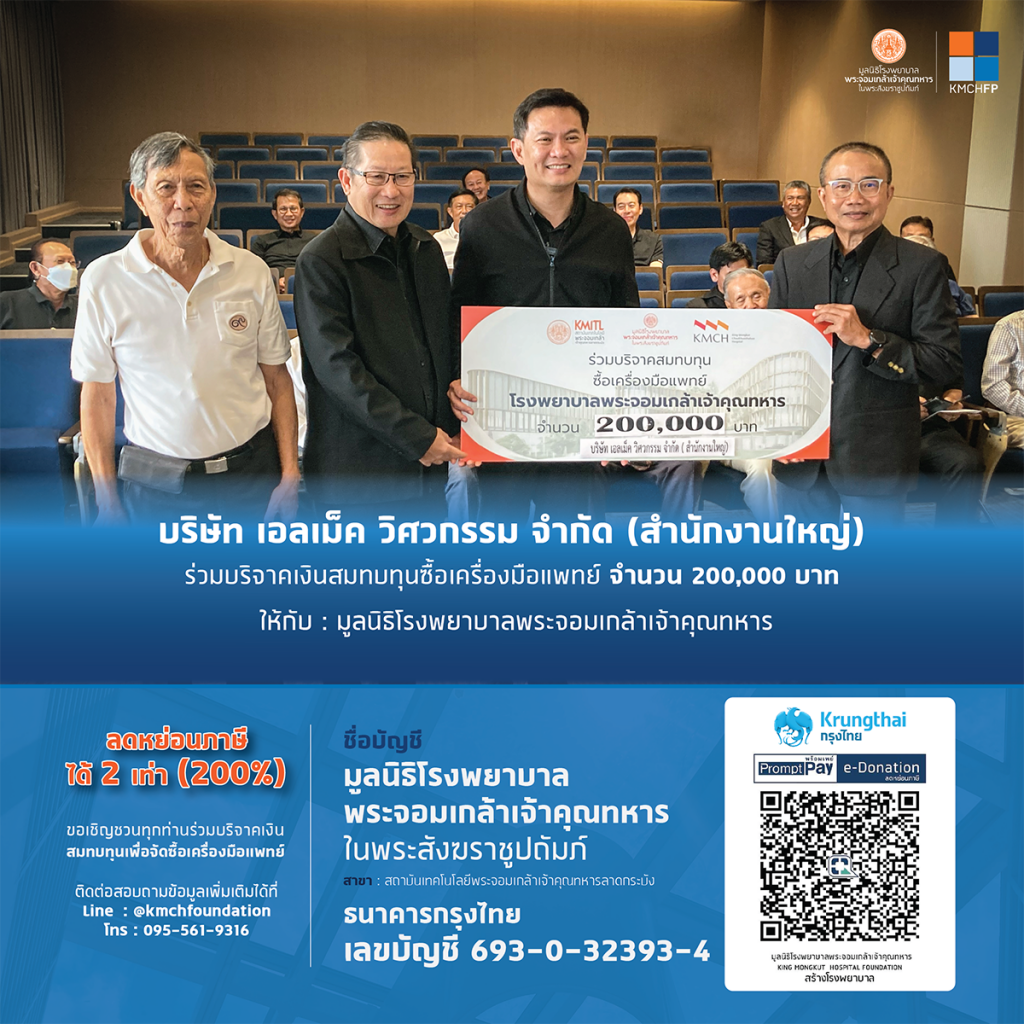 บริษัท เอลเม็ค วิศวกรรม จำกัด ( สำนักงานใหญ่ ) ร่วมบริจาคเงินสมทบทุนซื้อเครื่องมือแพทย์ 18 พฤศจิกายน 202518 พฤศจิกายน 2025มูลนิธิโรงพยาบาลพระจอมเกล้าฯข่าวสารและกิจกรรม บริษัท เอลเม็ค วิศวกรรม จำกัด ( สำนักงานใหญ่)* โดย คุณพงศ์ศักดิ์ อุทยานสุขสันต์ กรรมการผู้จัดการ ร่วมบริจาคเงินสมทบทุนซื้อเครื่องมือแพทย์ให้กับทางโรงพยาบาลพระจอมเกล้าเจ้าคุณทหาร มูลนิธิโรงพยาบาลพระจอมเกล้าฯ กลับหน้าหลัก | ข่าวสารและกิจกรรม